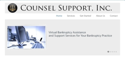Counsel Support is a my sub-chapter S corporation, through which I provide Virtual Bankruptcy Assistance and Outsource paralegal services to bankruptcy attorneys and law firms nationwide.